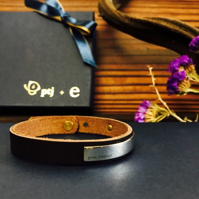 ブランドネームの 「pour_toujours」をtop部分に刻印してワンポイントに。